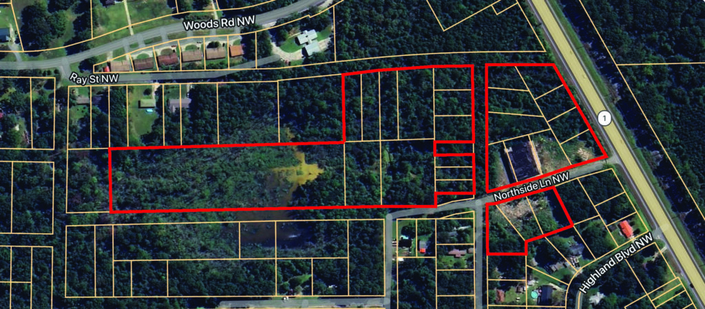 Selling in 1 Tract – Triple Road Frontage – ALL Utilities – A portion of this property lies in the 100-year flood plain