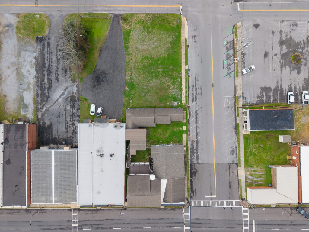 The property consists of three commercial units and three residential units, plus a separate rear structure already framed and ready for build-out of two additional apartments. A large rear lot provides ample room for future expansion or additional parking.